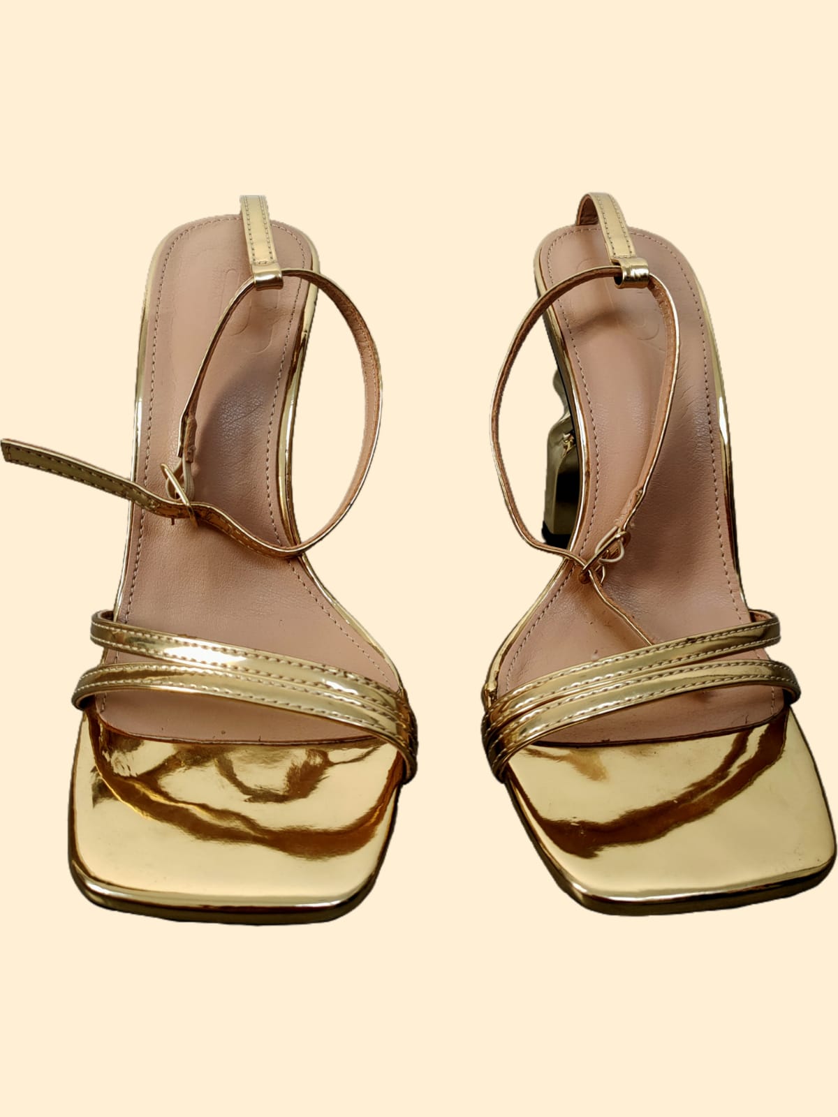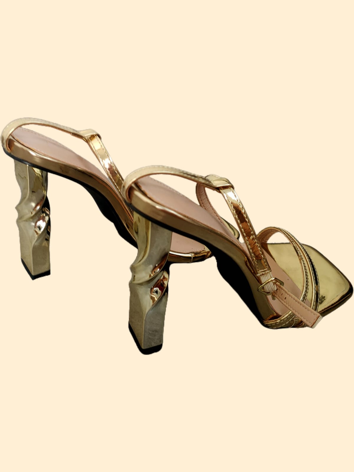 Sandalia dorada de tacón alto